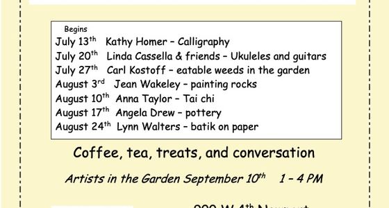 Refreshments, demonstrations and conversation featuring Kathleen Homer doing calligraphy.