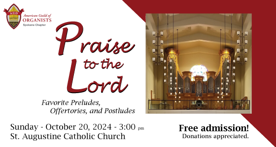 Preludes, offertories and postludes presented by members of the American Guild of Organists: Spokane Chapter. Organists Henry Bauer, Mark Haberman, Edward Hurd, Joseph Schubert, and Janelle Scott for a varied program of their favorite organ music.