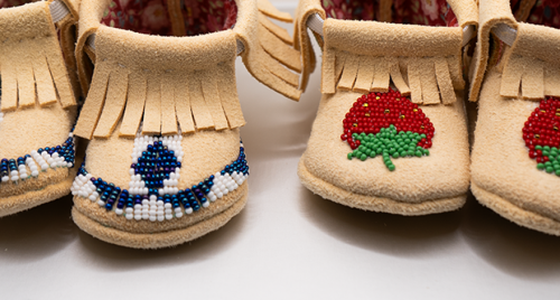 Learn to craft baby moccasins from soft tan leather adorned with select beads.