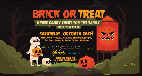 Children can trick or treating at Brick West and other local groups and businesses. Booths will be set up with candy stations and the entire plaza will be fenced in. Parents can enjoy some beers and food and dogs are also invited.