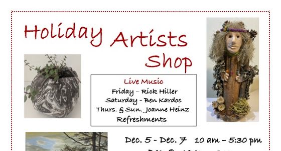 The holiday artists’ shop features diverse art mediums like pottery, ornaments, fabric and more. Through Dec. 8. Thursday-Saturday, 10 a.m.-5:30 p.m. Sunday, 10 a.m.-3 p.m.