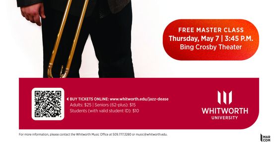 Features the Whitworth Jazz Orchestra in concert with Grammy-Award winning trombonist Michael Dease.