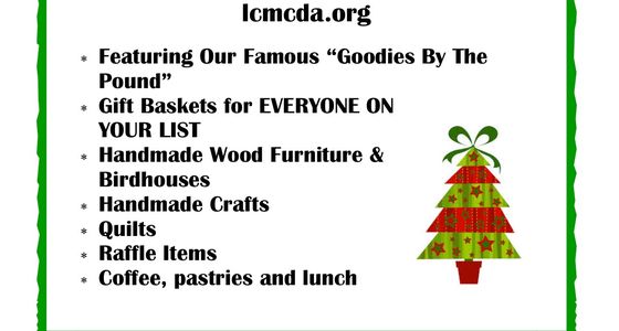 Famous freshly baked cookies and candy by the pound, handcrafted treasures, handmade wood items, gift baskets, cafe and raffle.