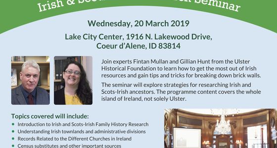 Join experts Fintan Mullan and Gillian Hunt from the Ulster Historical Foundation to learn how to get the most out of Irish resources and gain tips and tricks for genealogy. The programm content covers the whole island of Ireland, not solely Ulster.