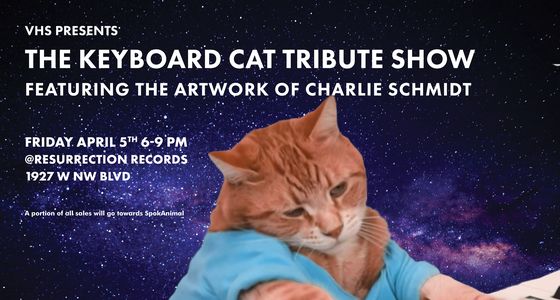 Keyboard Cat-themed art paying tribute to the late Bento. The show will be featuring art by Charlie Schmidt, the father of Keyboard Cat, as well as tribute pieces by other local artists. A portion of all profits from sales will go towards SpokAnimal.