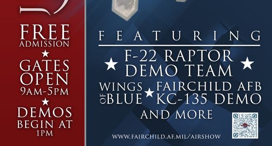 Team Fairchild will open its gates to the public for a showcase of the Pacific Northwest’s airpower featuring several flight teams, parachute teams and aircraft fly-bys. Get details about what to bring and parking information, visit fairchild.af.mil/AirShow. Demos begin at 1 p.m.