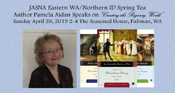 Featuring a presentation on “Creating the Regency World,” from Pamela Aidan, author of the Fitzwilliam Darcy, Gentleman series, followed by a signing. Regency attire is welcome but not required. Menu includes tea sandwiches: goat cheese-pecan, turkey cheddar apple, Kentucky Benedictine and chicken salad. Goose House petite scones, cookies and bars provided for dessert. Beverages include teas, coffee and lemonade. Gluten-free and vegetarian items available for no added cost if requested when tickets are purchased. Tickets must be purchased by April 22. The event is April 28, 2-4 p.m. Get tickets at jasnaewanid.org/events or send check by mail (payable to JASNA Eastern WA/Northern ID). Email jasnaewanid@gmail.com for the mailing address and for general questions.