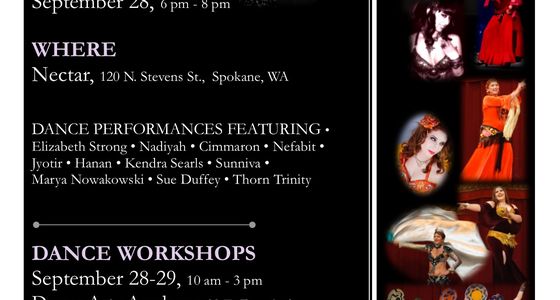 Dance performances featuring Elizabeth Strong, Nadiyah, Cimarron, Hanan, Nefabit, Jyotir, Kendra Searls, Marya Nowakowski, Sue Duffey, Sunniva and Thorn Trinity.