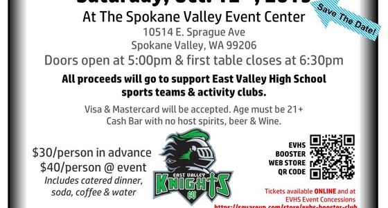 All proceeds will go to support East Valley High School sports teams and activity clubs. Cash bar with no host spirits, beer and wine. Ticket includes an Italian buffet with non-alcoholic beverages. Get tickets at squareup.com/store/evhs-booster-club. Must be 21 or older to attend.