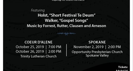 Fall Chorale Coeur d’Alene Concert with string ensemble accompaniment. Friday at 7 p.m. and Saturday at 2 p.m.