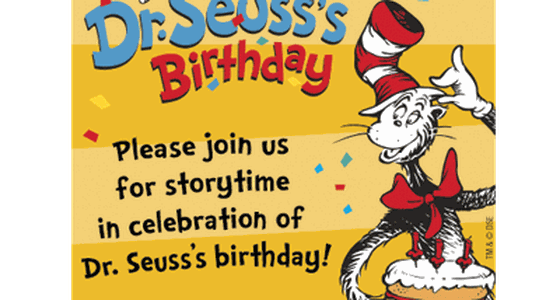 Celebrate Dr. Seuss’ birthday with renowned storyteller, Janet Ray (known far and wide for her performances as Auntie Violet). Followed by a craft.