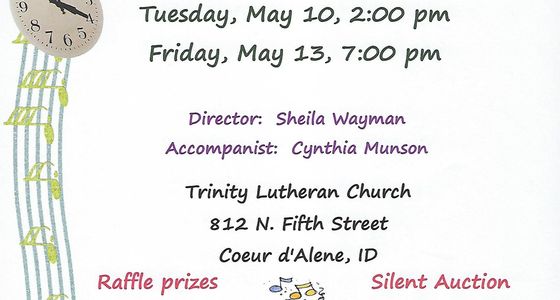 A free choral concert hosted by the Coeur d’Aleers featuring all genres of music. Event includes raffle and silent auction. All donations raised with benefit Kootenai County local charities.