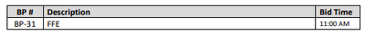 It shall be the duty of each Bidder to submit his/her bid on or before April 13, 2026, and the hour specified below. Bids will be opened and read aloud immediately per the bid schedule at the Spokane International Airport Event Center (located at 9211 W. McFarlane Road). Sealed bids will not be accepted via electronic submission. Any bids received after the noted date and times in the bid schedule cannot and will not be considered. The Bid Schedule is as follows: