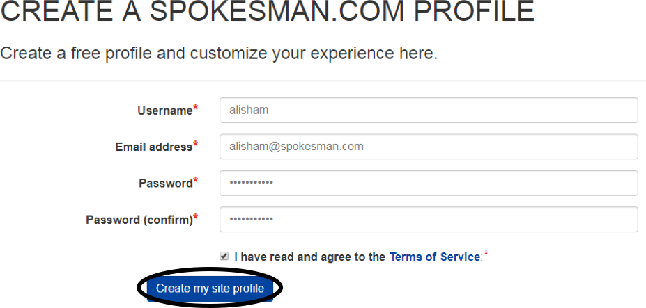 Clicking on the link will redirect you to the profile activation page on The Spokesman-Review website