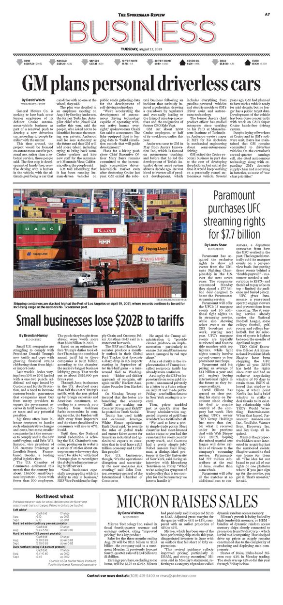 The Business Front Page from Aug. 12, 2025