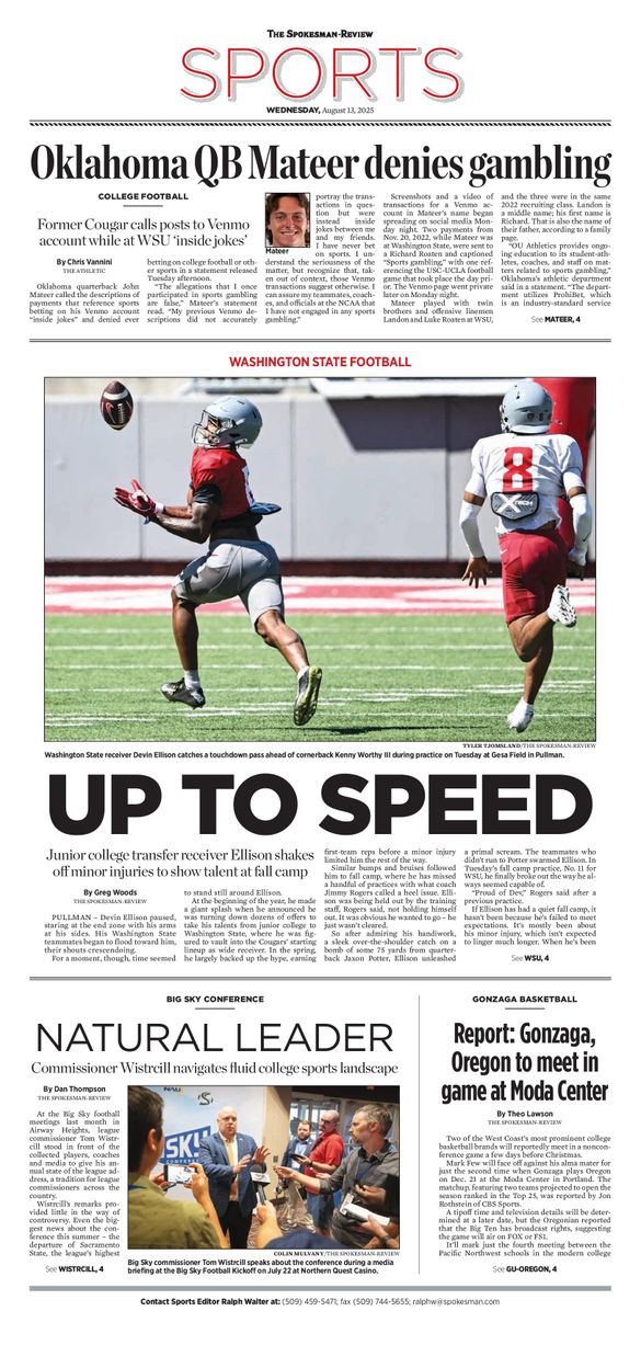 The Sports Front Page from Aug. 13, 2025