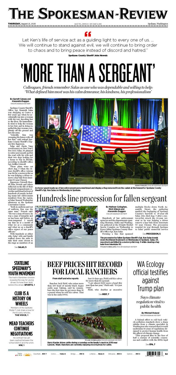 - Hundreds of police and fire vehicles line procession for fallen Spokane County sergeant