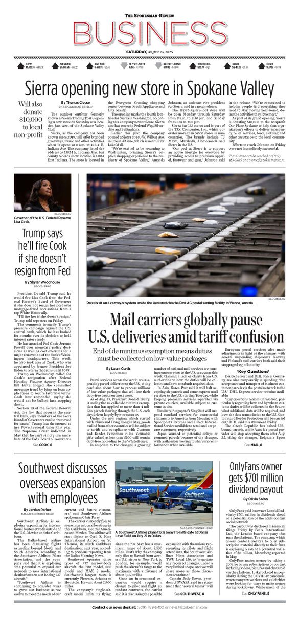 The Business Front Page from Aug. 23, 2025