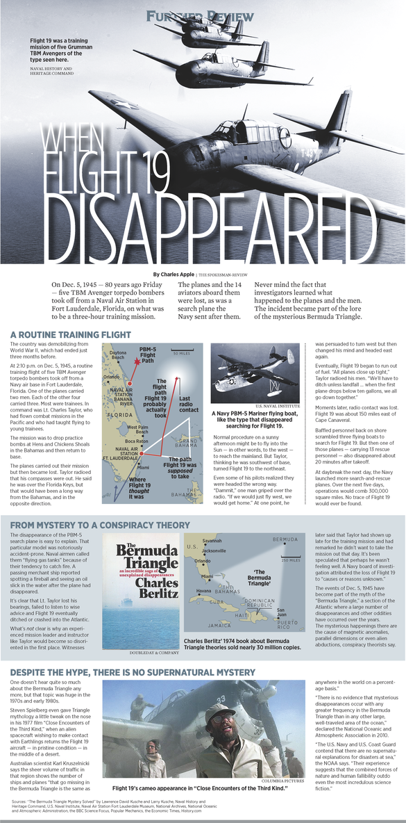 On Dec. 5, 1945 — 80 years ago Friday — five TBM Avenger torpedo bombers took off from a Naval Air Station in Fort Lauderdale, Florida, on what was to be a three-hour training mission.