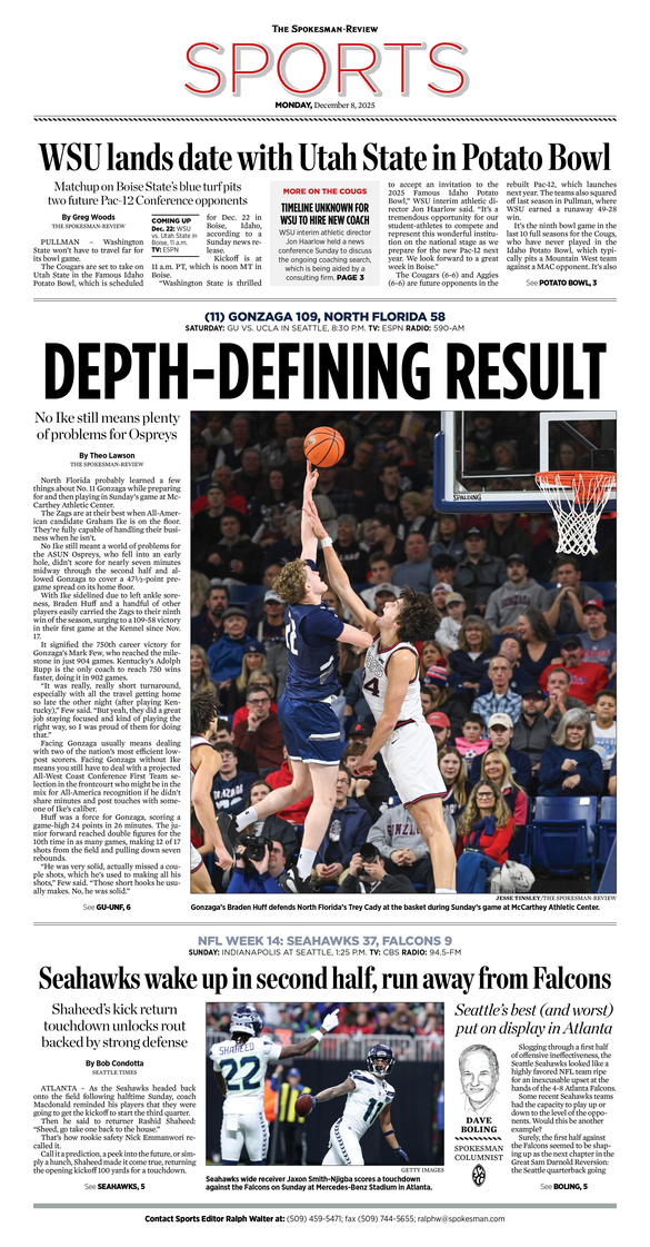 The Sports Front Page from Dec. 8, 2025