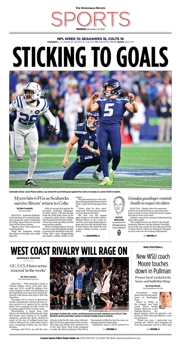 The Sports Front Page from Dec. 15, 2025