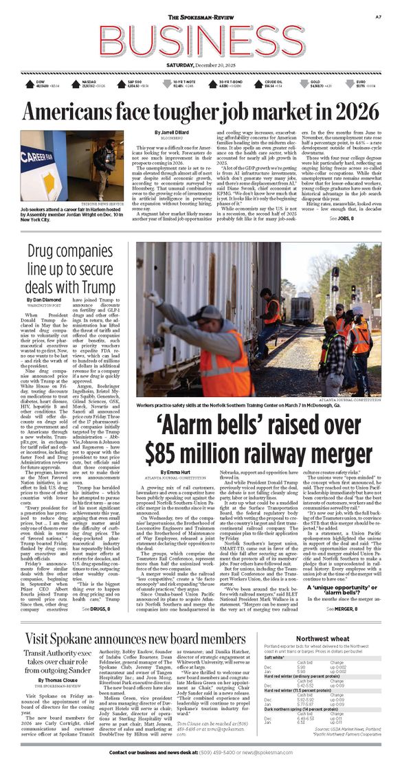 The Business Front Page from Dec. 20, 2025