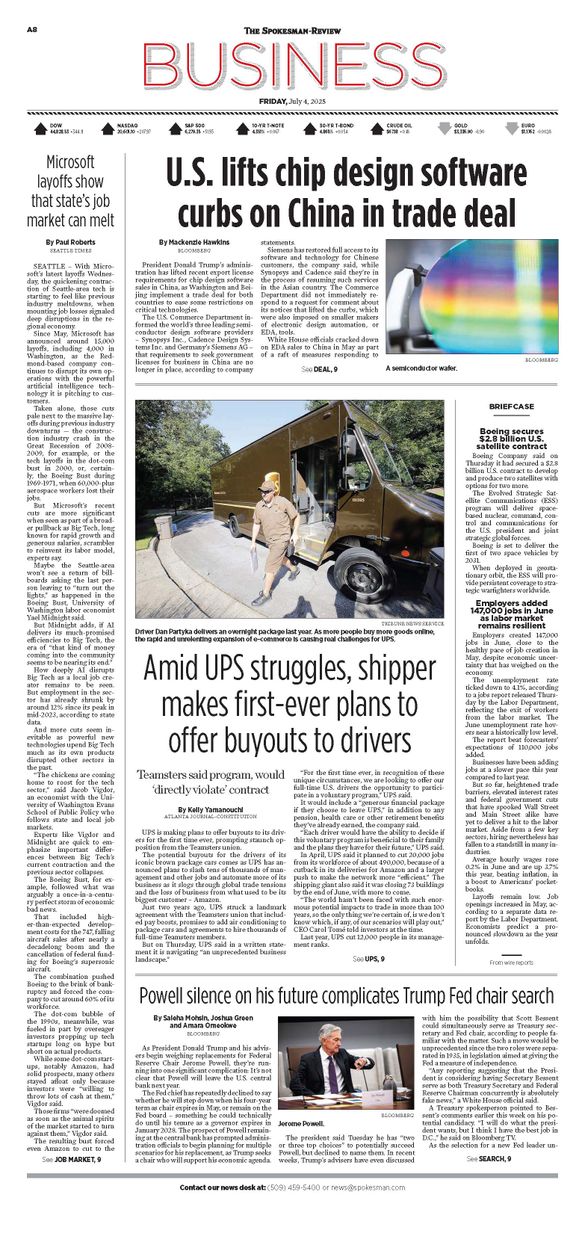 The Business Front Page from July 4, 2025