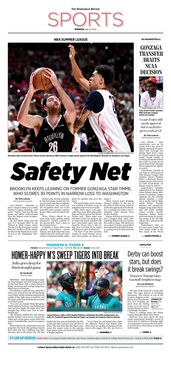 The Sports Front Page from July 14, 2025