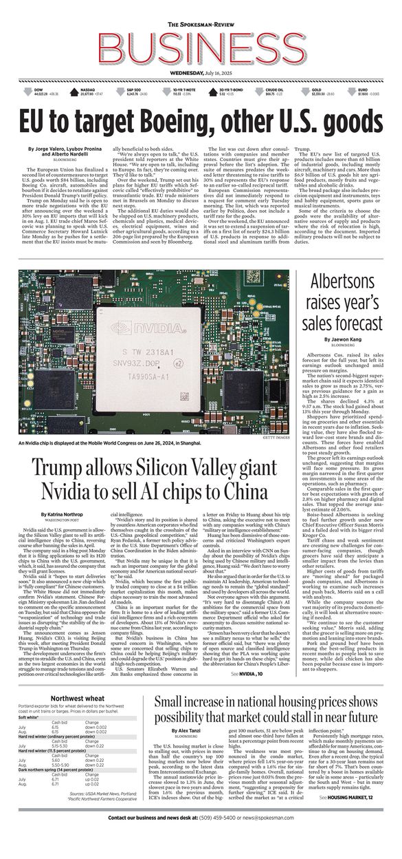 The Business Front Page from July 16, 2025