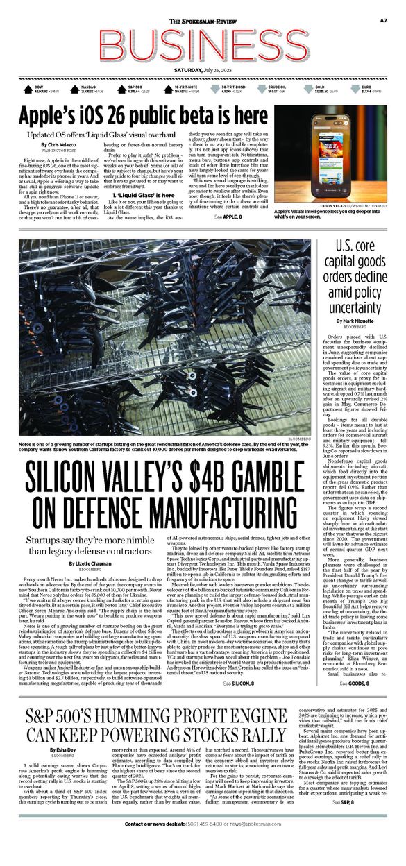 The Business Front Page from July 26, 2025
