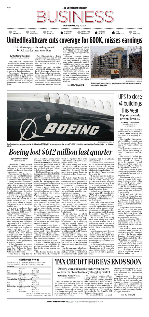 The Business Front Page from July 30, 2025