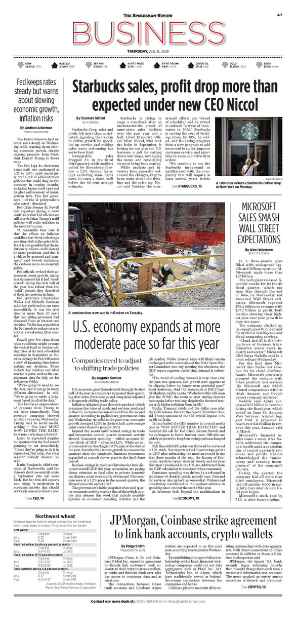 The Business Front Page from July 31, 2025