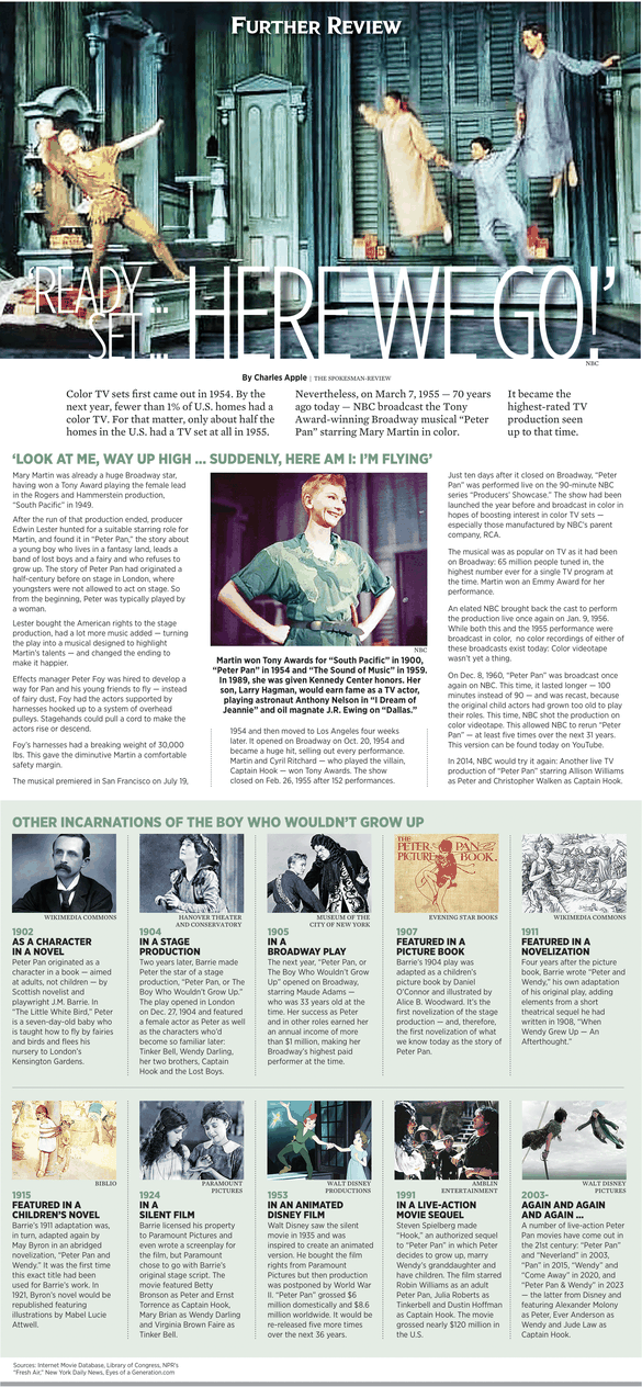 Dreamed up in 1902 by Scottish novelist J.M. Barrie, Peter Pan is a nearly century old character now. He's remained ever popular, though, with frequent adaptations again and again.