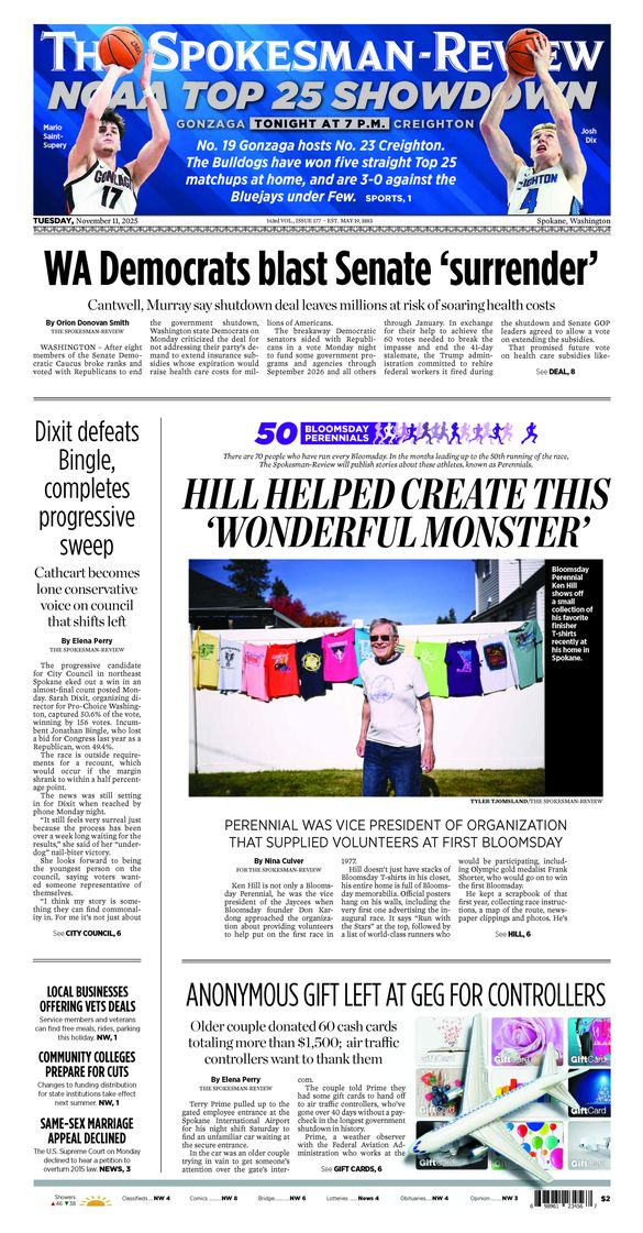 - Dixit defeats Bingle, completing a progressive sweep in Spokane council elections