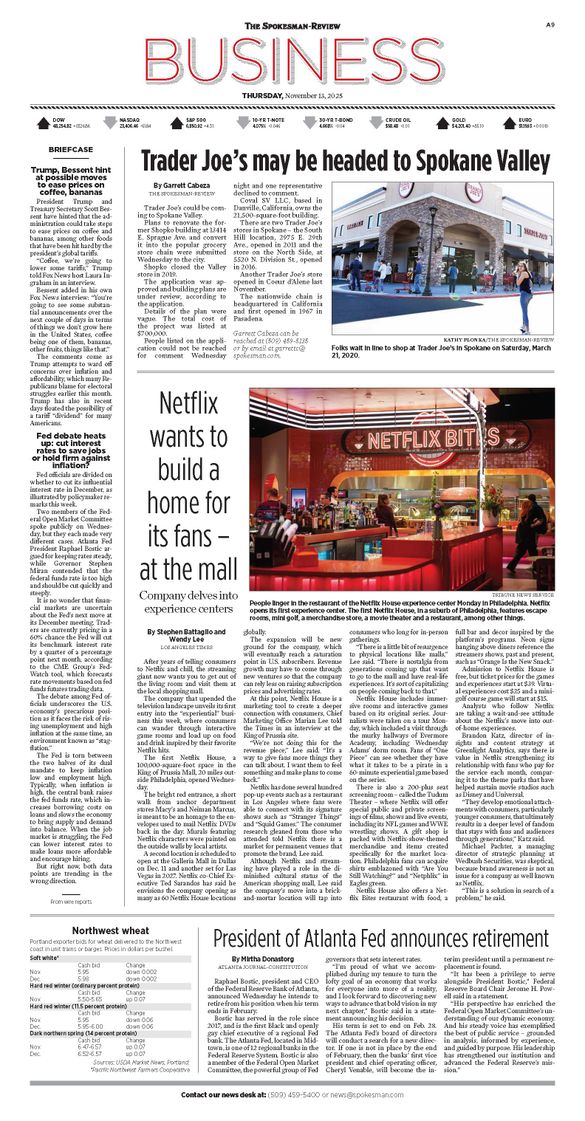 The Business Front Page from Nov. 13, 2025