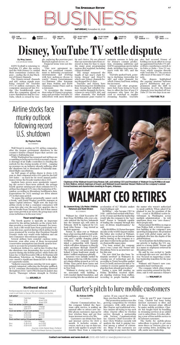 The Business Front Page from Nov. 15, 2025