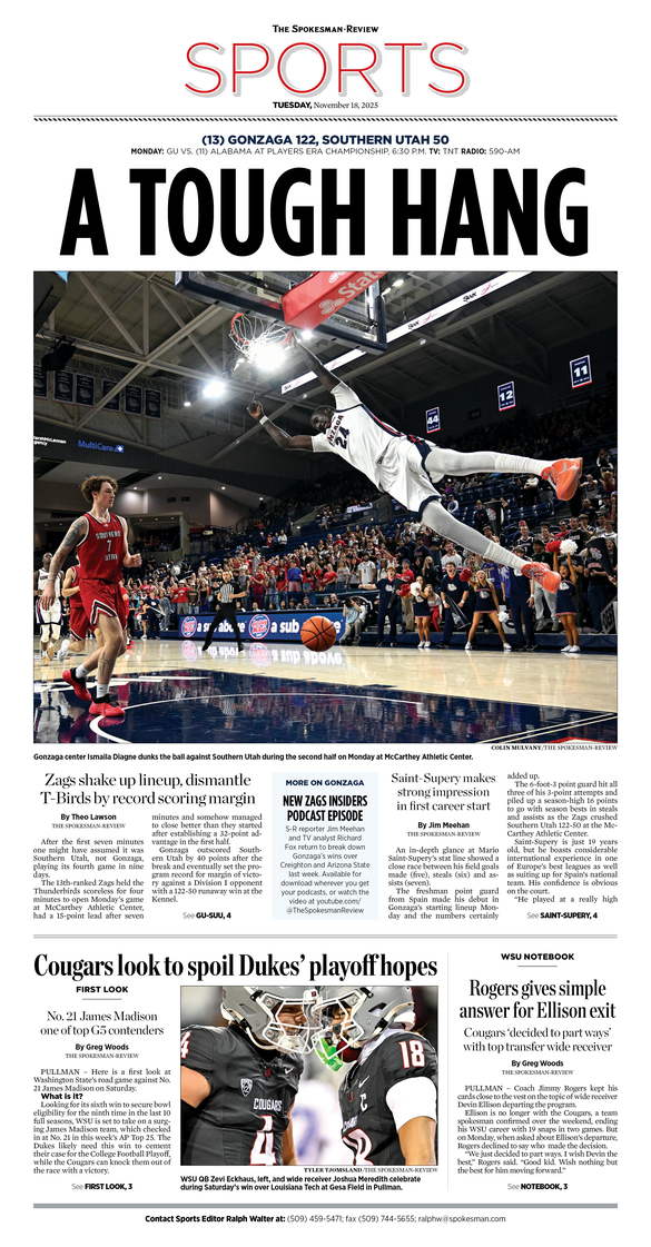 The Sports Front Page from Nov. 18, 2025