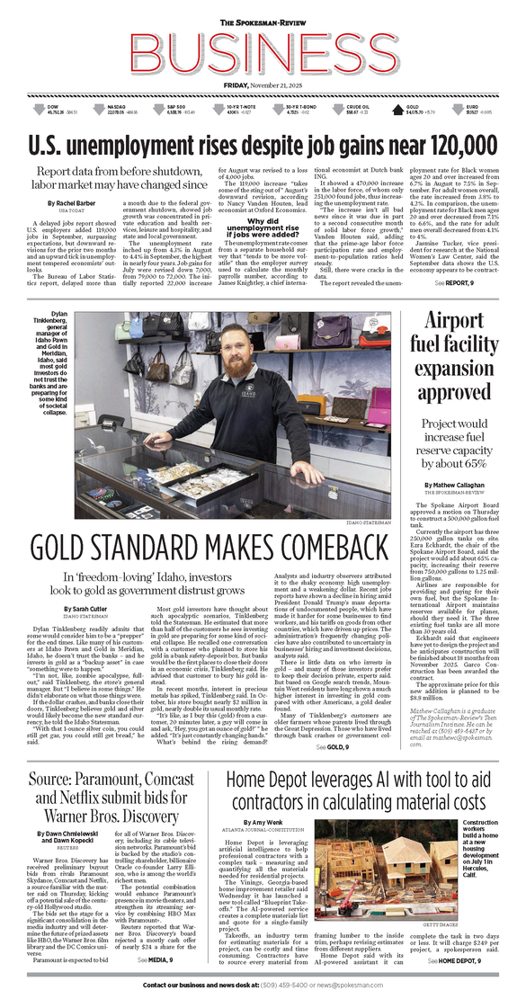 The Business Front Page from Nov. 21, 2025