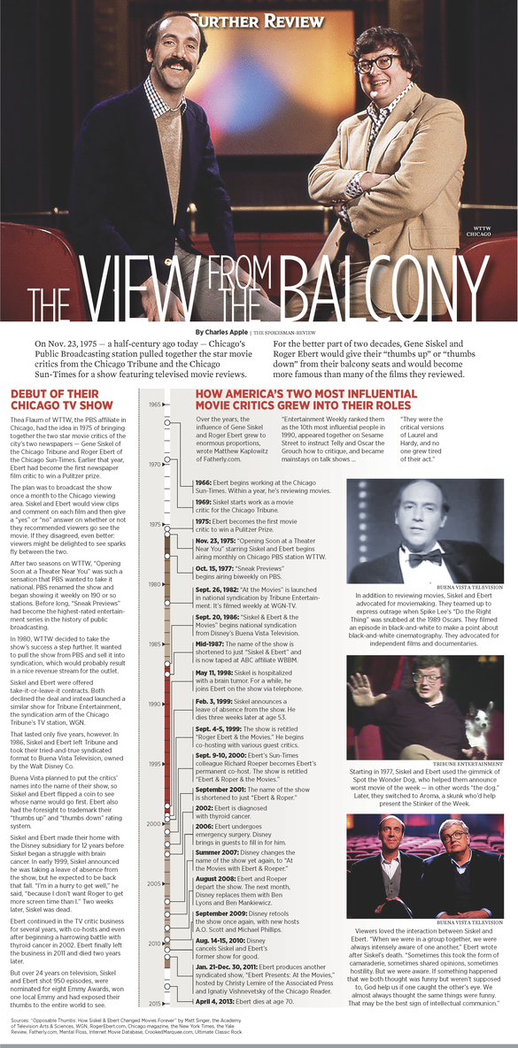 On Nov. 23, 1975 — a half-century ago today — Chicago’s Public Broadcasting station pulled together the star movie critics from the Chicago Tribune and the Chicago Sun-Times for a show featuring televised movie reviews.