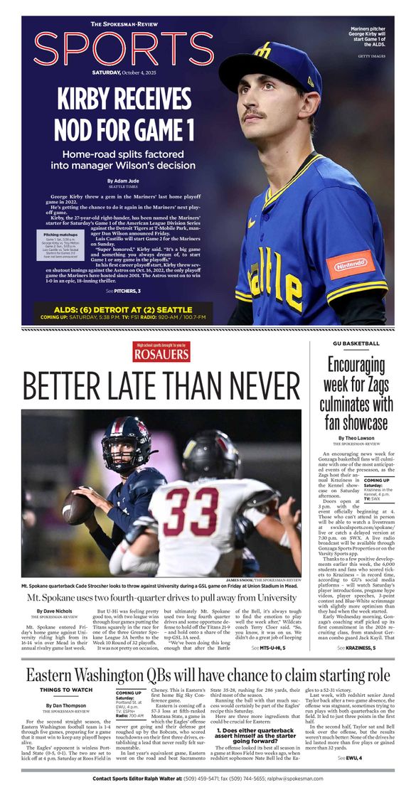 The Sports Front Page from Oct. 4, 2025