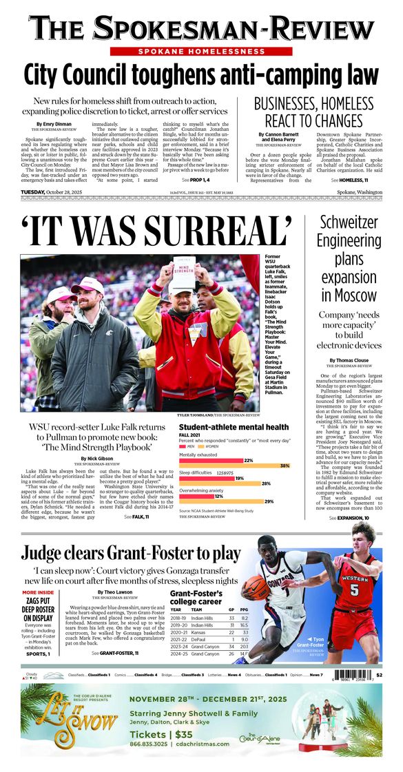 - Spokane City Council unanimously toughens homeless camping laws with ‘Prop 1 plus’