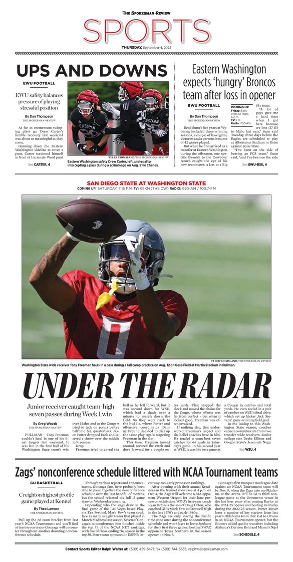 The Sports Front Page from Sept. 4, 2025