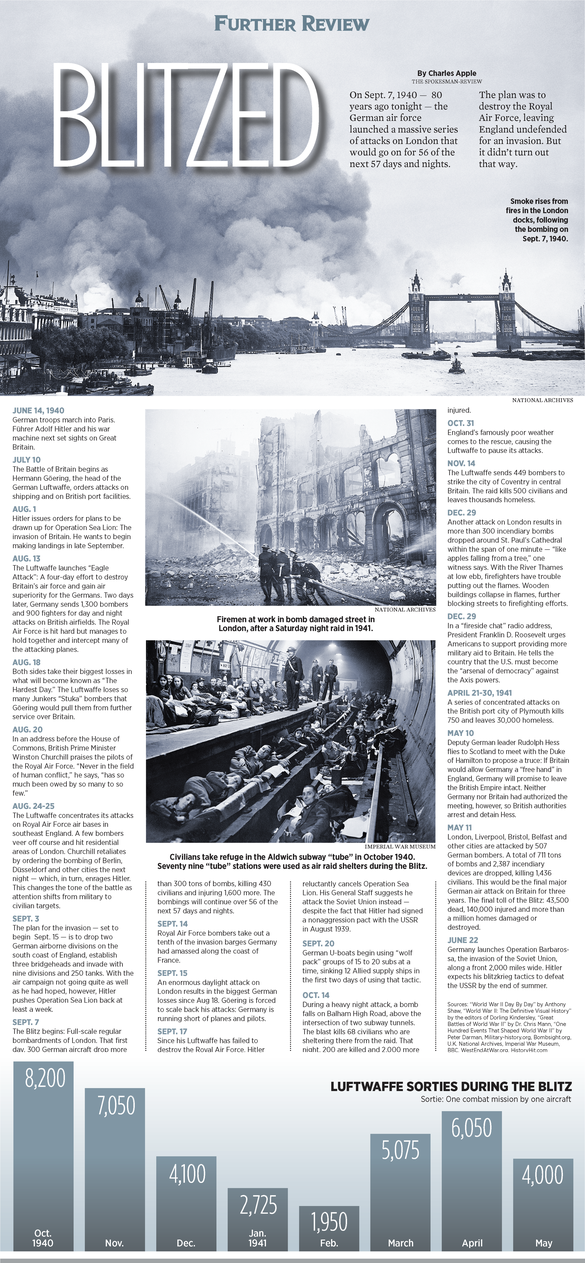 On Sept. 7, 1940 — 80 years ago tonight — the German air force launched a massive series of attacks on London that would go on for 56 of the next 57 days and nights.