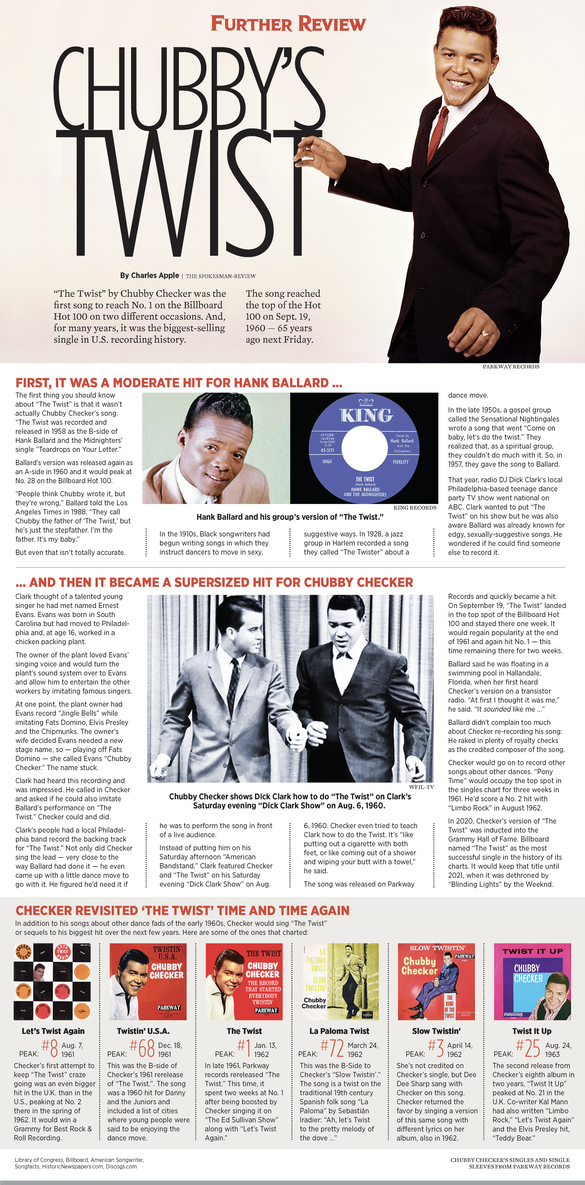 “The Twist” by Chubby Checker was the first song to reach No. 1 on the Billboard Hot 100 on two different occasions. And, for many years, it was the biggest-selling single in U.S. recording history.