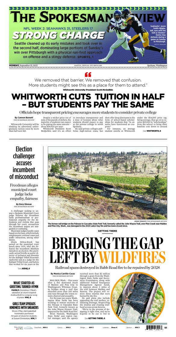 - Getting there: Railroad bridges charred in Malden fire on the Palouse to Cascade trail will be repaired