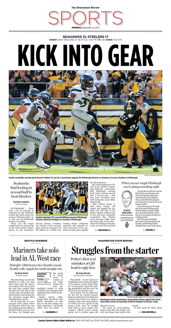 The Sports Front Page from Sept. 15, 2025