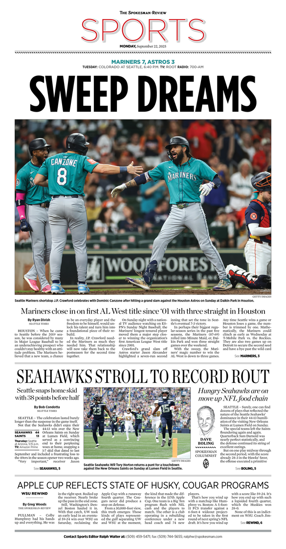 The Sports Front Page from Sept. 22, 2025