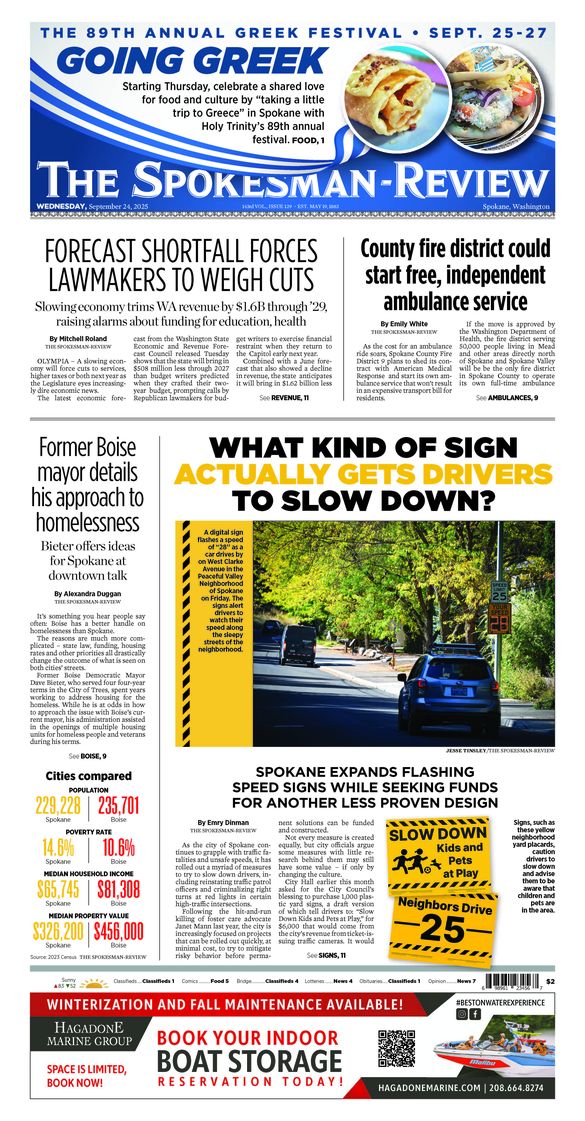 - A tale of two speed signs: Spokane expands flashing speed signs while seeking funding for another, less proven design