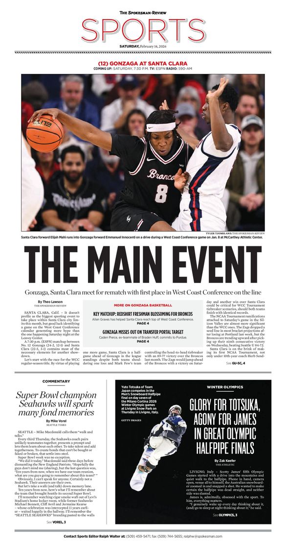 The Sports Front Page from Feb. 14, 2026