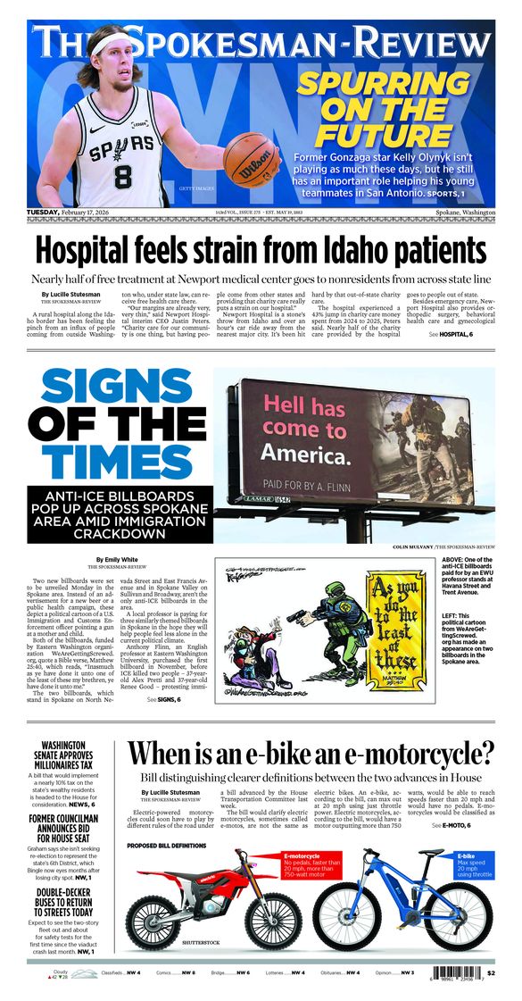 - Sign of the times: A slew of anti-ICE billboards has gone up around Spokane amid Trump immigration crackdown